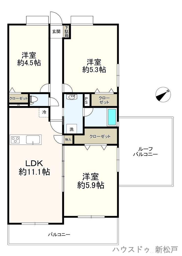 新規内装リフォーム(2026年4月上旬完成)!約18㎡のルーフバルコニー付き!南東・北東角部屋!対面式キッチン!食洗機付き♪