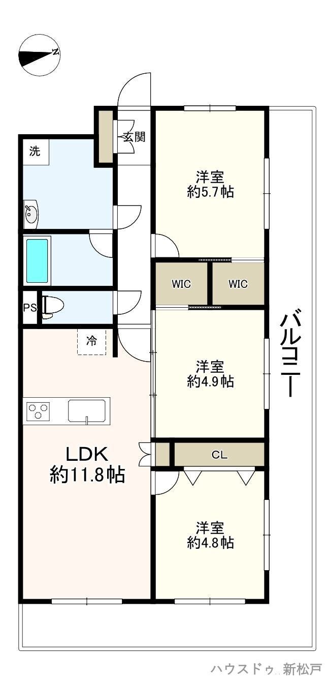 | 主要採光 | 北東向 | バルコニー | |